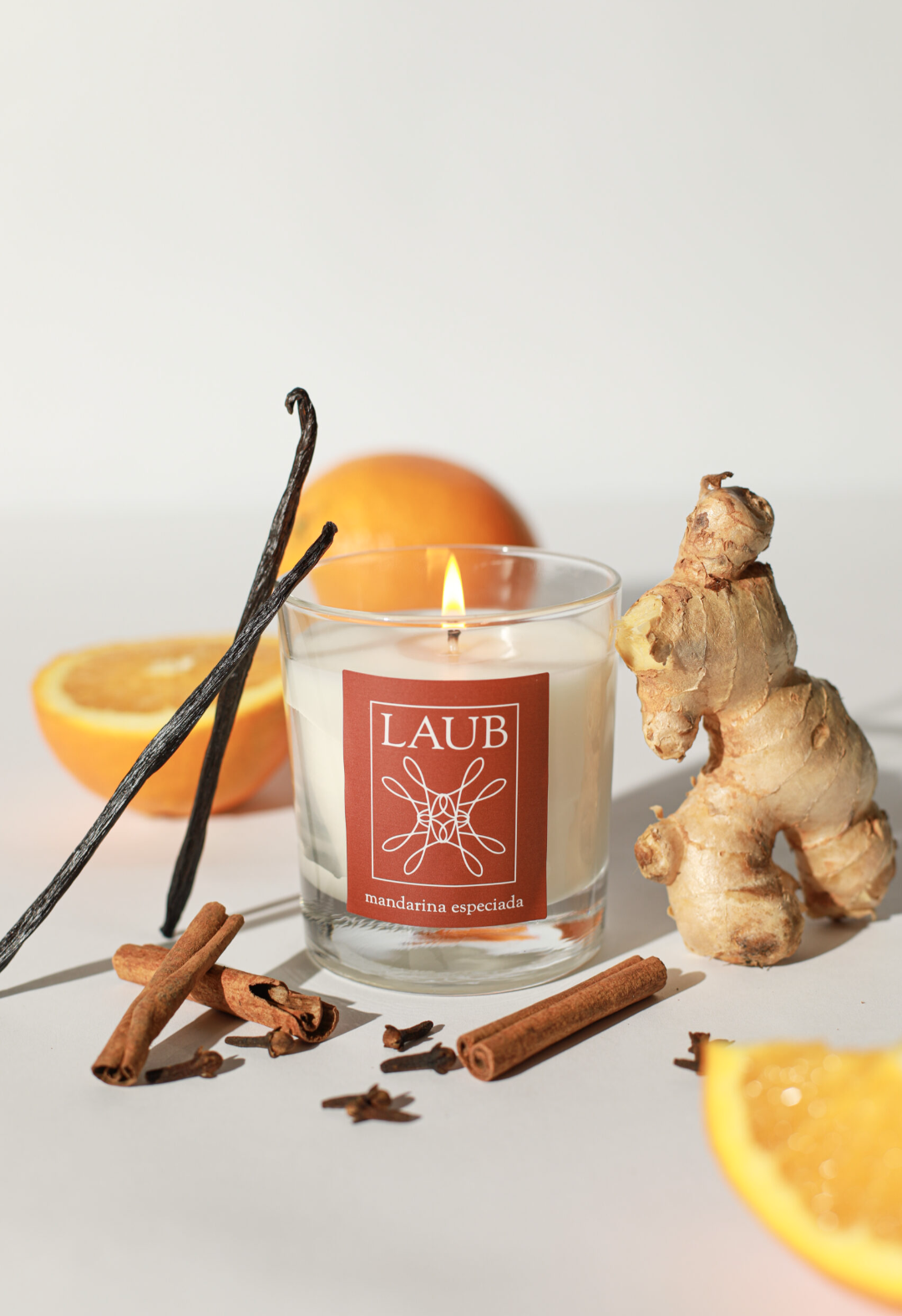 As velas da LAUB são produzidas com uma mistura de ceras vegetais e um percentual de cera mineral, o que confere estabilidade na base e permite a queima da vela por inteiro.