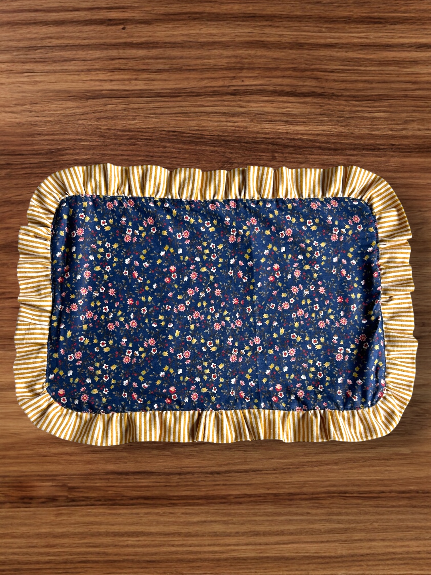 Dupla-face, use-o com o lado floral para cima deixando a mesa colorida ou opte pelo lado todo vichy para uma combinação mais neutra.