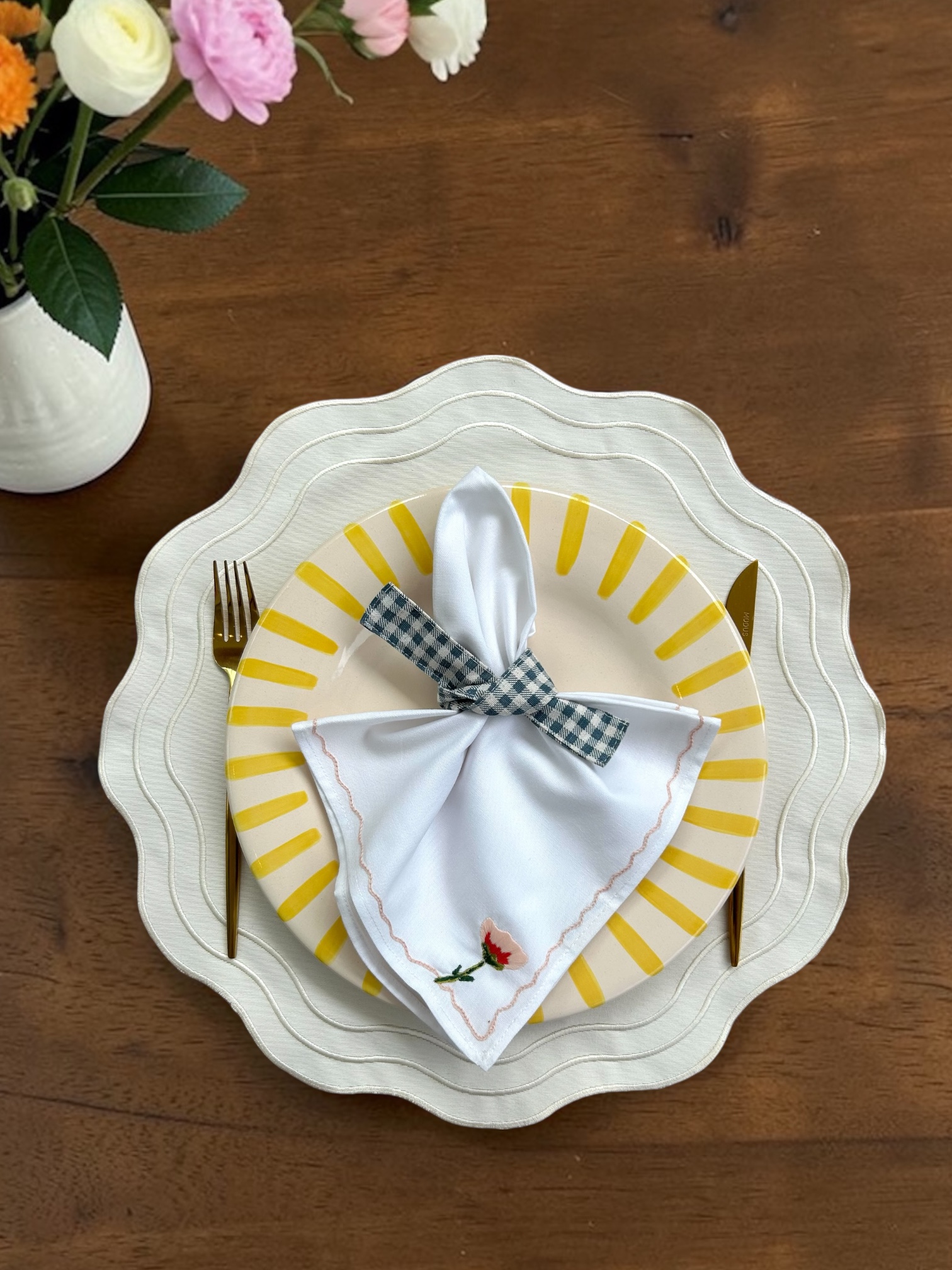 Jogo Americano Impermeável com bordado trionda pérola.