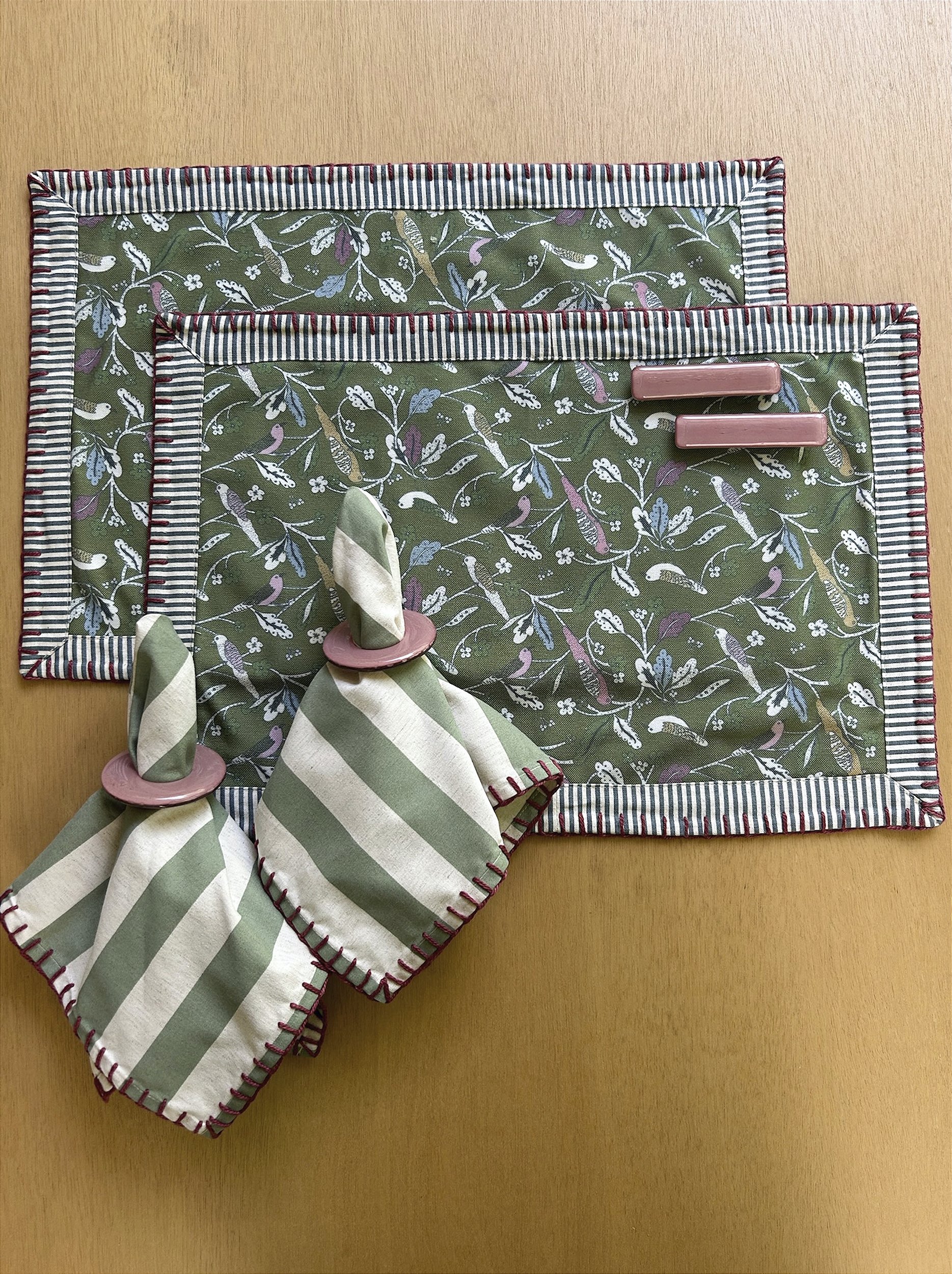 Com estampa desenvolvida especialmente para essa coleção, o jogo americano pássaros é composto de detalhes super especiais.