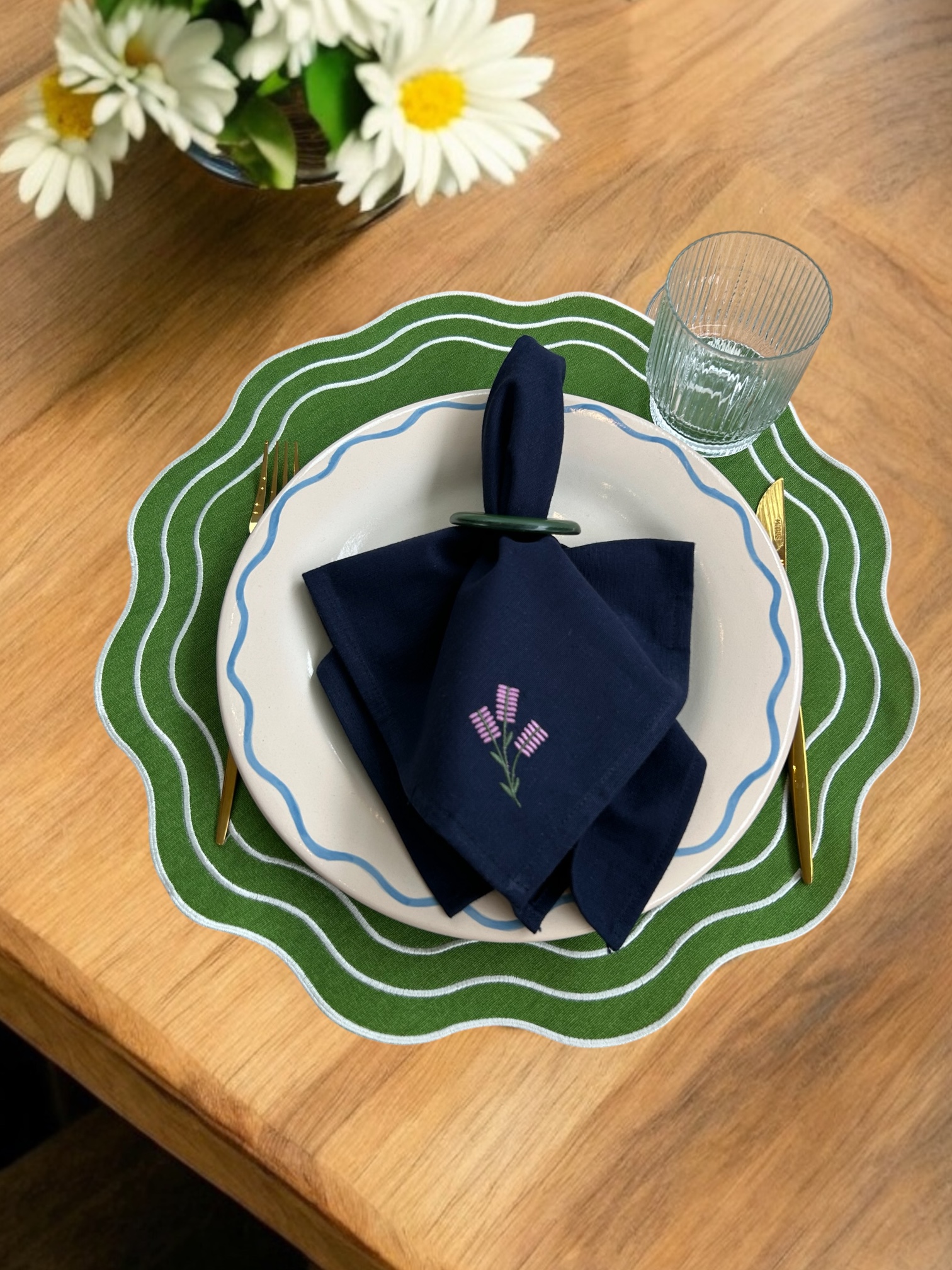 Jogo Americano Impermeável verde com bordado trionda pérola.