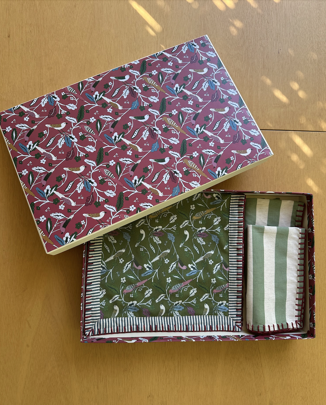 4 Jogos americanos com estampa desenvolvida especialmente para essa coleção, o jogo americano pássaros é composto de detalhes super especiais.
