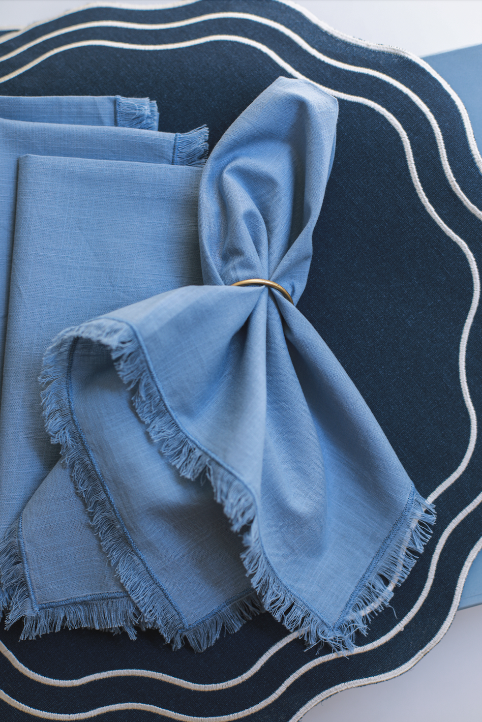 Guardanapo de mesa, em algodão, com desfiado nas laterais.