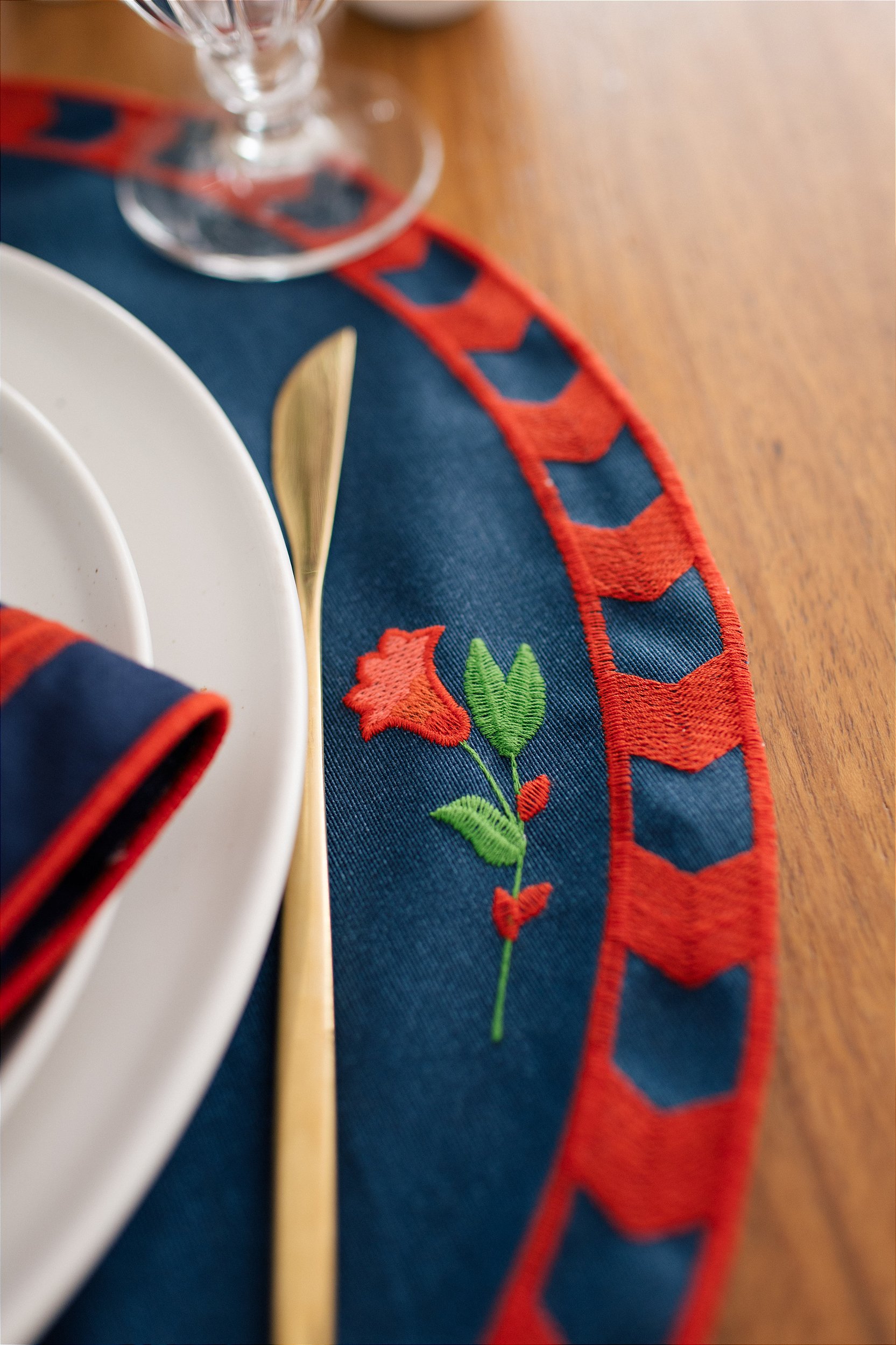Jogo americano em tecido impermeável com bordado em temática de Romã. Fica lindo quando usado junto com o guardanapo Romã, na mesma temática.